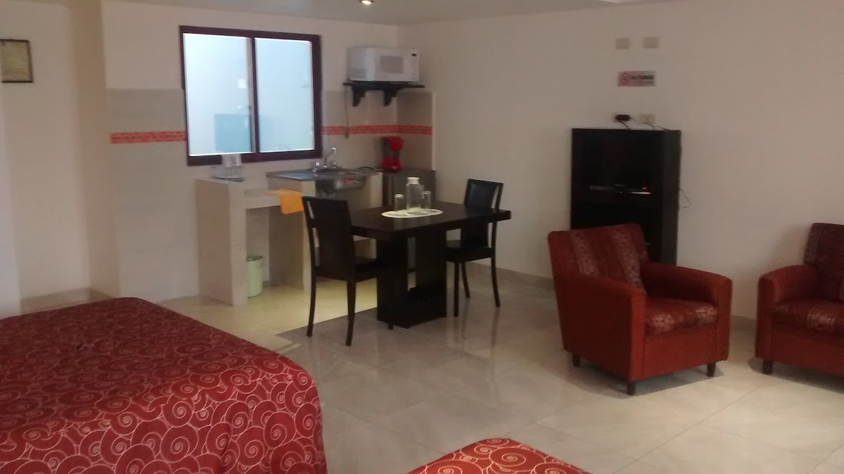 A haven in the center of Xalapa Quiet sanctuary in the bustle of downtown.Situated on a pedestrian street, one is seconds away from the Carlos Fuente library,Diego Rivera museum, and Parque Juarez where the main colonial goverment buildings are ,like the governors palace.The hotel rooms have kicthenettes with small fridges ,coffe makers,dishes, and microwave.The rooms have a stting area and kicthen table.The hotel is small,but is super quiet and offers a beautiful domed garden sitting area.The staff is helpful and very nice, but speak mostly spanish.Internet is reliable and the rooms are a bargain for less the 30 usd a night.On a clear day one can the snowy peak of Orizaba once you step outside the hotel!